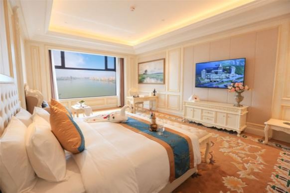 我们承包了该项目1、2、3期所有客房、接待区、墙面的生产制作,工艺复杂。酒店大大小小的房门共计600多樘,所有的客房家具共1300多间,其内部的所有家具均由亿度生产。